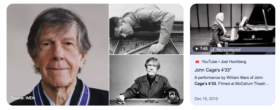 ![]() John Cage: Concert for Piano, Solo for Clarinet (p. 121) Edition Peters No. 6705-CL © 1960 by Henmar Press Inc. New York. Reproduced by kind permission of Peters Edition Limited, London. Swept Under the Carpet with John Cage By Miklos Legrady, edited by Gabor Podor John Cage’s experiments with sound mark him as one of the great artists of his generation. This current critique does not doubt him but it does light up both his insights and misconceptions. I am not here to downplay Cage, whose talent is obvious. But I am here to chastise an art world failing at language, truth, and logic, in order to deify talented artists whose ideas and assumptions do not always succeed at proving their point. If we have not seen as far as others, it is possibly because giants were standing on our shoulders. Sol Lewitt, for example, wrote in Artforum (1)that in Conceptual art the idea is dominant while the execution is but perfunctory. But then he was disappointed in perfunctory executions of his own work, yet he never revised his writing. It would have been embarrassing, after being published in Artforum. We only learned this when Larry Bloom published his biography in 2019(2) , which means that for 50 years, universities propagated the news that skill was unimportant. In fact, skill consists of a mastery of the media, therefore it is a skill in clear messaging. When your statement is unclear, your message is confused. And so, believing that the idea was the dominant aspect of a work of art, in the year 2020, at Basel Miami, three certificates sold for $125,000 each attesting that a banana was a work of art. As reported in Wikipedia, “Comedian is a 2019 artwork by the Italian artist Maurizio Cattelan. Created in an edition of three (with two artist's proofs), it appears as a fresh banana duct taped to a wall. As a work of conceptual art, it consists of a certificate of authenticity with detailed diagrams and instructions for its proper display.” Had Catellan believed that his banana was worth $125,000, when performance artist David Duna rushed in and ate the banana, Catellan would have called for a stomach pump to retrieve his valuable property. That Sol Lewitt also made mistakes does not disparage the greater good of his work. But the consequences of his mistake expand in concentric waves. Once the cat is out of the bag, who knows what disasters will follow? For example, in 2025 this very author produced an artist certificate stating that 1kg. of nothing in this room was a work of art. (3) John Cage is not a traditional musician whose works aimed at acoustic attraction. He may even be better described as an acoustic artist who experimented with the extremes of sound. Some successful, others questionable and open to criticism. Cage may well fall under the category of 20th century nihilist artists whose work found no criticism as it was barely understood in his own time even as it gathered much interest for it’s experimental progress. But we may well call him an acoustic artist rather than a musician, when compared to his peer, Phillip Glass. Glass’s work is beautiful and one may listen to Tubular Bells over and over because of the work’s beauty. John Cage, on the other hand, was one who shares responsibility for the word “beauty” no longer being found in a description of music. I believe this is a mistake, for beauty attracts while Cage’s work does not depend on attraction. It interests us but one would not listen to any of Cage’s works more than once for its acoustic content. Beauty attracts but its counterpart is ugliness, repulsion, boredom. One approaches the later out of curiosity, or scholarship, but rarely repeats the experiment, unlike music, to which we listen over and over John Cage’s extremism and experimentation propelled him to world wide fame, but he also held mistaken assumptions which no one dared question. For example, there is such a thing as silence. Silence is the absence of intentional sound, the space between. Silence separates musical passages to give the mind time to absorb the theme, and if someone should cough or move their chair in the audience, no one believes such ambient sounds are part of the artist’s musical intentions unless clearly stated. And then we must ask if that sound is worthwhile listening to, we must judge if it is good art. Cage is famously quoted as saying, "There's no such thing as silence," a concept central to his iconic conceptual work, 4′33″. Cage argued that perceived silence is actually filled with ambient sounds, from wind to human bodies, and that these accidental sounds constitute the true "music" of the piece, encouraging the listener to be mindful of their surroundings. His experience is based on time spent in an anechoic chamber, where he could still hear the sounds of his own circulation.” But Cage’s assumption is a moot point. It is based on his idea that ambient noise is music, the music of the universe and of the human body. However, there is no music of the universe or the human body, for none of these are intentional. Music is always an intention even when including accidents and chaos. Ambient noise contains no intelligence; there is no consciousness present in accidents, nor any artist’s statement. Art means a mastery of media to express an intention based on an artist’s vision. Art is always a conscious statement, even when including accidents. A painter who locks the doors of a gallery for the length of their show obviously has nothing to say, they are impotent. An artist’s absence is not a statement; it is a denial, of no importance when referring to art, except among nihilists. For Cage it’s different. His exploration of the edges was worth the effort, but it does not seem he learned the right lessons from this one, though he produced other works that merit admiration. ![]() Once intention is taken into account, silence is the space between two intentional sounds. The space between two unin